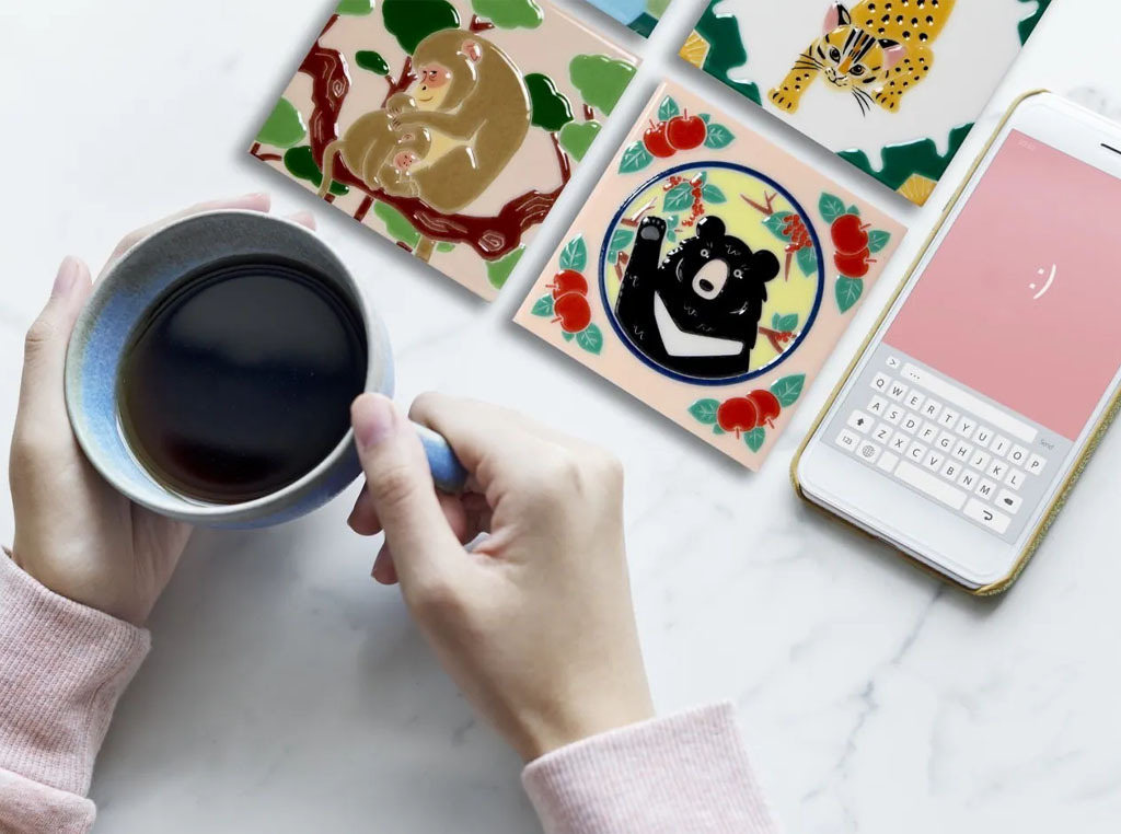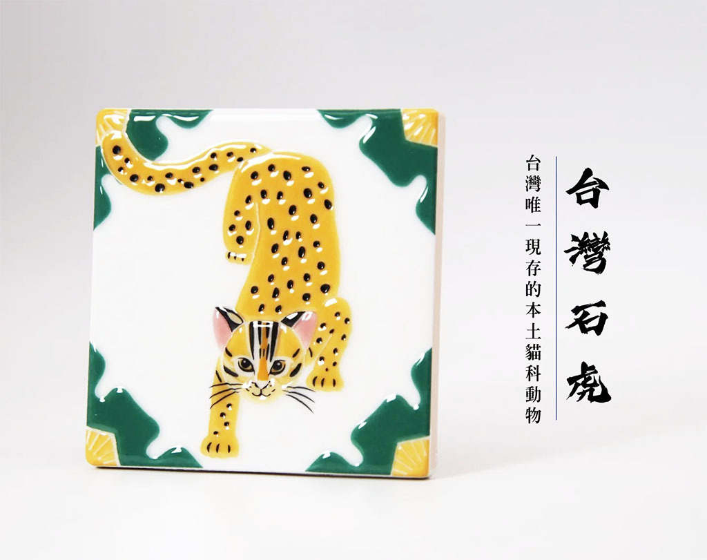 結合台灣黑熊、台灣石虎、台灣獼猴與黑面琵鷺,將台灣特有種動物轉化為經典花磚設計,展現台灣獨特的自然生態與文化底蘊。