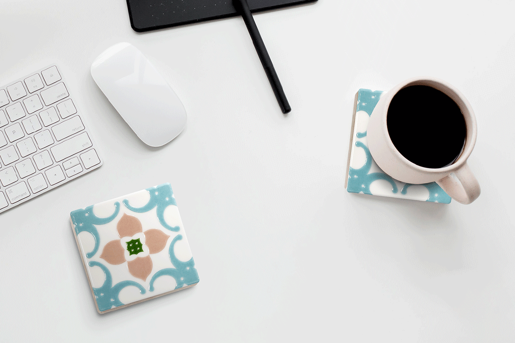 ▲ 附軟木墊,一貼即成獨特杯墊,帶您品味百年花磚風華。