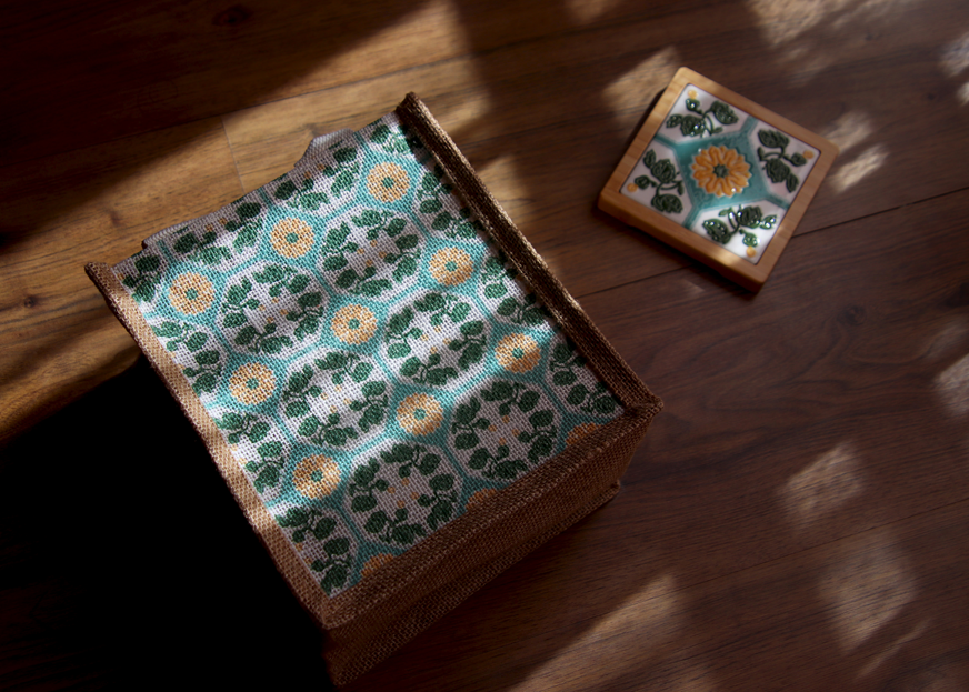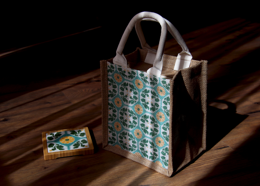 這款花磚麻布提袋,將台灣老花磚的經典魅力與人文溫度融入您的日常。