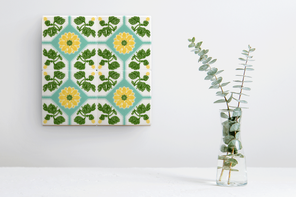 匠心工藝,呈現臺灣花磚之美。杯墊、壁飾、磁磚,三種用途,為空間灌注歷史藝術風華。