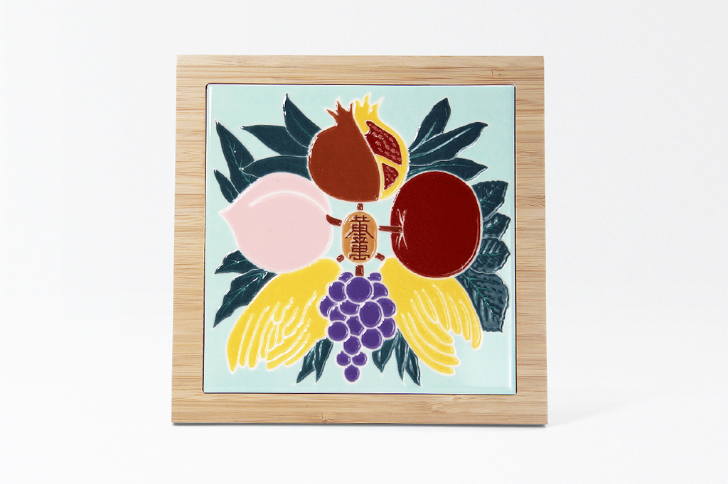 葡萄和石榴祈求多子多孫,長壽的桃子、福氣的佛手柑、平安的蘋果,黃金萬兩帶來財富。