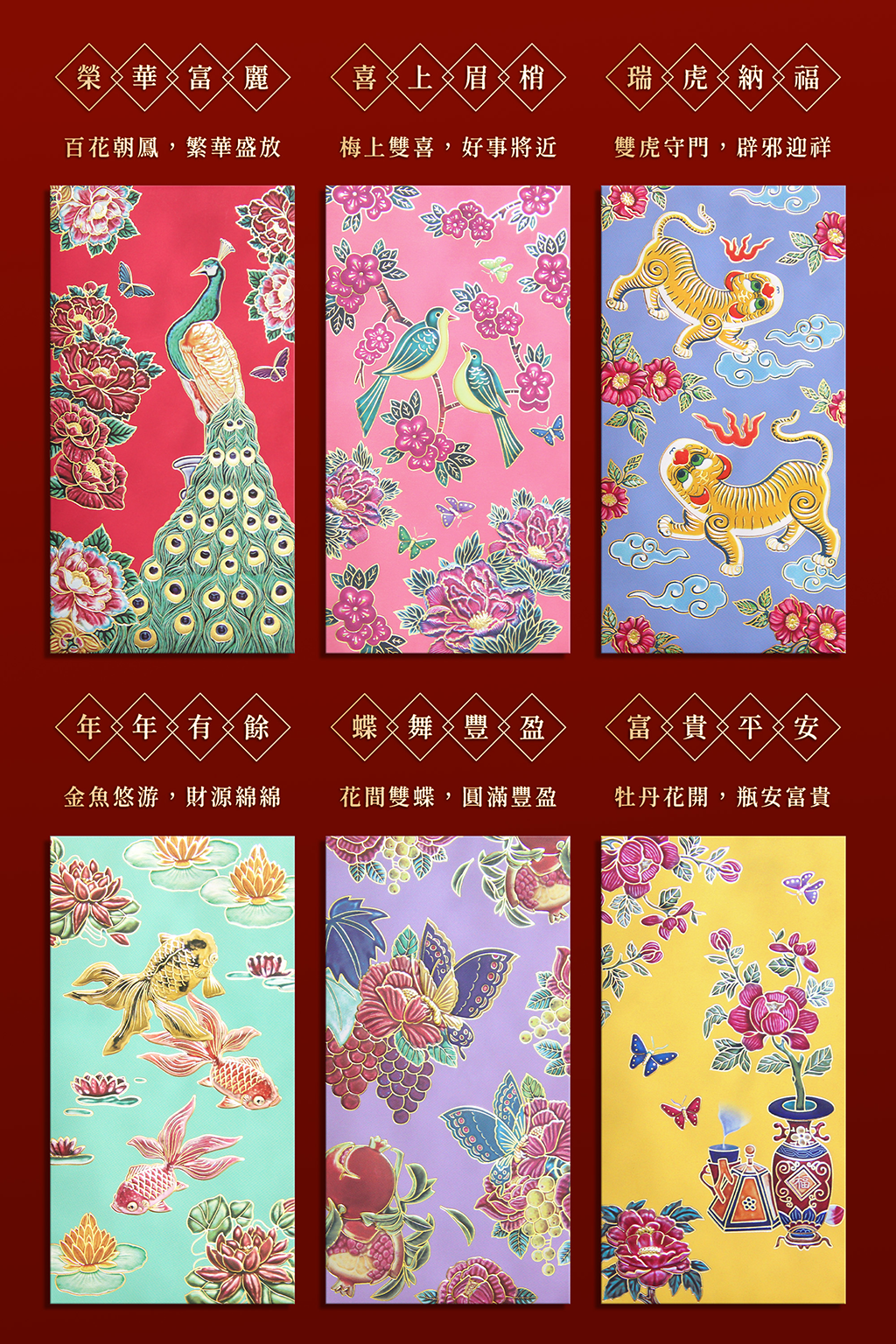 一套真正屬於台灣的花磚紅包袋, 一套6款圖案 。