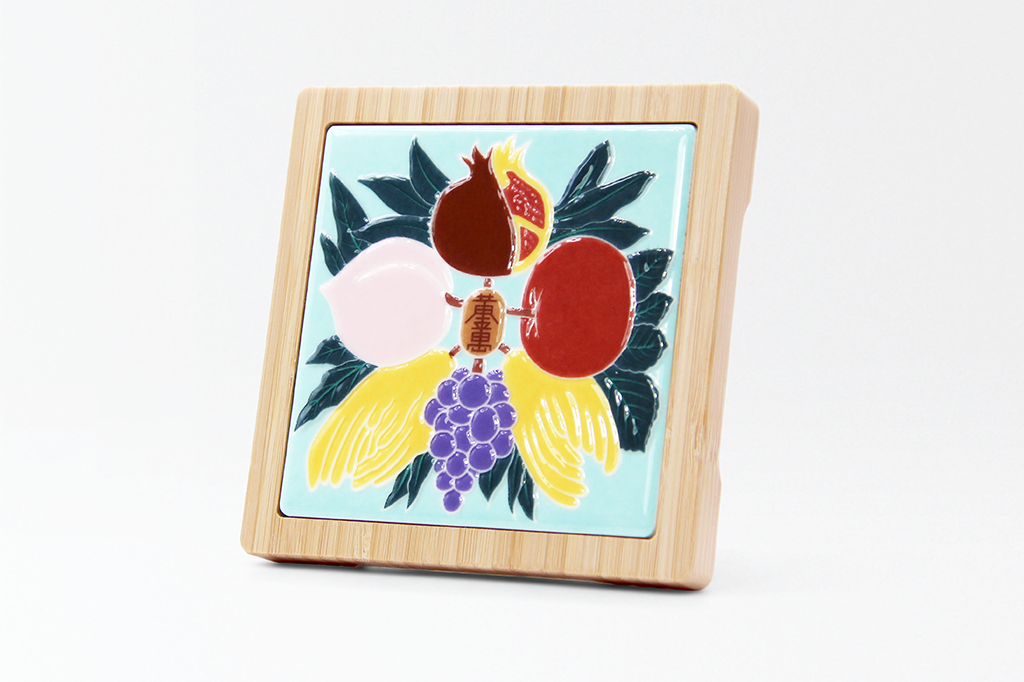 這片黃金萬兩花磚,在彰化埔鹽鄉發現,彰化縣自1723年設縣,有「古蹟城市」的美名,鹿港更是座人文薈萃,商業繁盛的古都,縣內其他鄉鎮也同時擁有豐富的文化資產,非常值得去參觀,這棟埔鹽鄉的三合院古厝,屋主務農,鑲上水果花磚祈求來年的豐收。