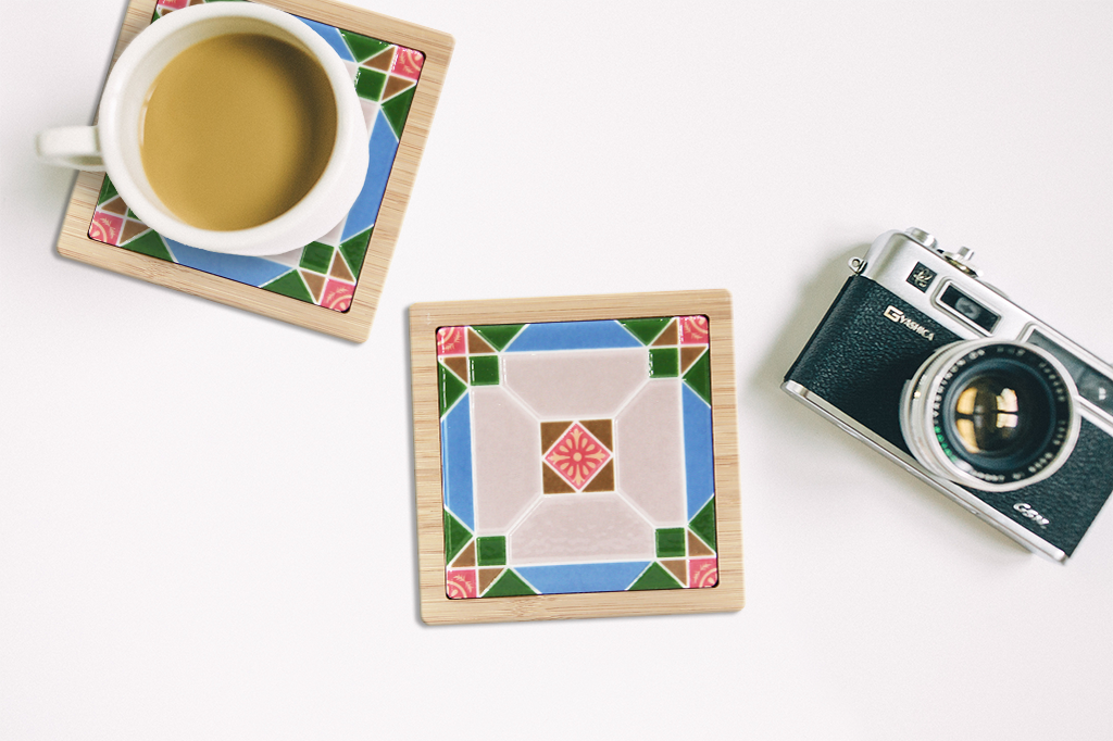 純潔|台灣花磚竹杯墊